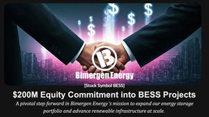 Newport Beach, CA, Oct. 07, 2025 (GLOBE NEWSWIRE) -- Bimergen Energy Corporation [OTCQB: BESS] (“the Company” or “Bimergen”), a developer of utility-scale battery energy storage projects and an independent power provider, announced today that it has secured an equity commitment of up to $200 million from a leading European energy generation and transmission company (the “Equity Partner”) to fund the development and construction of utility-scale Battery Energy Storage System (BESS) facilities across the United States.